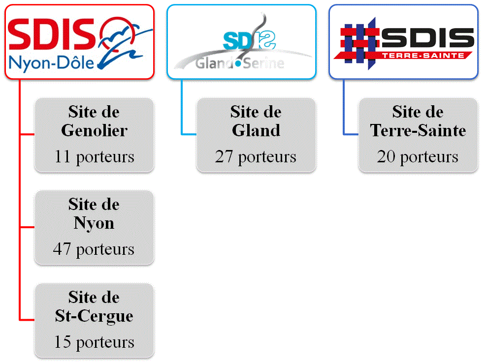 Les États-majors des SDIS Gland-Serine, Nyon-Dôle et Terre-Sainte sont représentés au sein du comité.